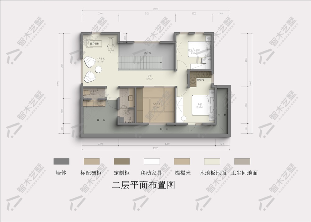 二层的休闲室是全家的兴趣角,可设茶桌品茗互动,也可作为健身区瑜伽运动。一家人各有所乐,又能彼此陪伴。